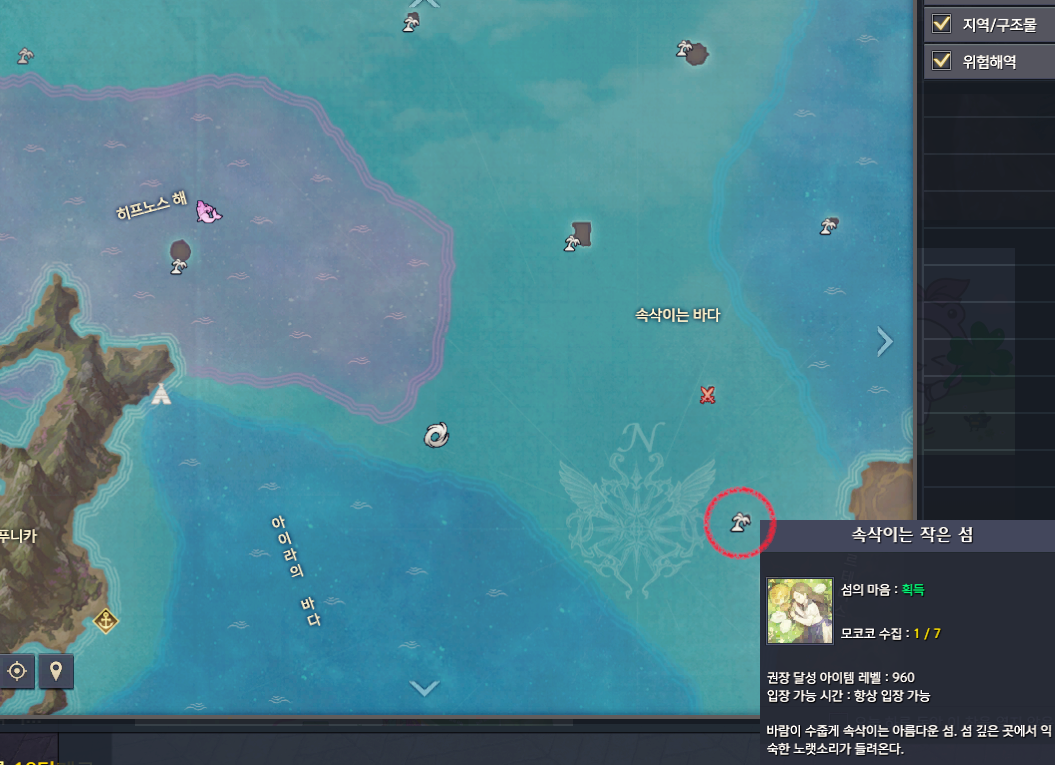파푸니카 대륙의 우측에 위치한 속삭이는 작은 섬에 도착하여 보라색 모험 퀘스트를 진행하면 됩니다.