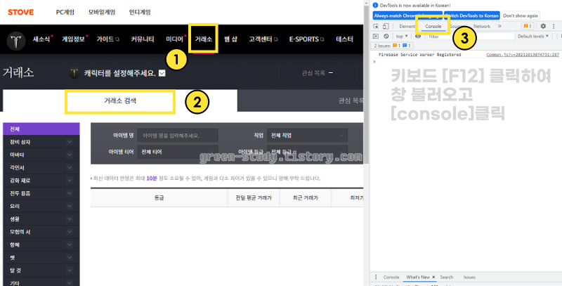 - 로아 공식 홈페이지에서 [거래소] 클릭