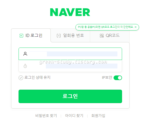 (4) 네이버 아이디와 비밀번호를 입력하는 팝업창이 나옵니다. 정보를 입력합니다.