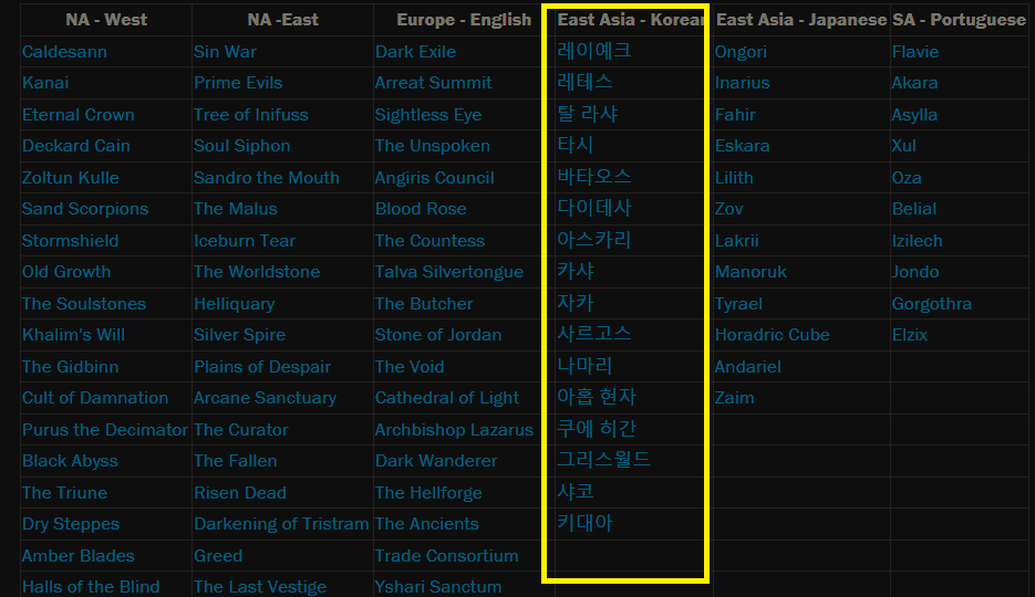아직 모바일 버전만 시작된 오픈 초로 변경될 수 있지만 현재까지는 탈라샤(Tal Rasha) 서버가 한국 1섭이라고 알려져 있습니다. 스트리머가 많은 서버는 샤코 서버라고 합니다.