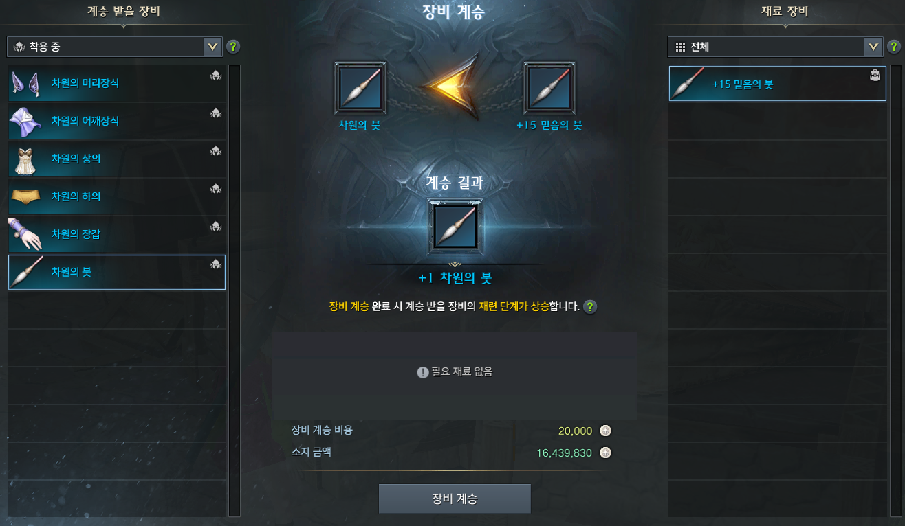 - 믿음 장비(802 레벨)로 계승하기