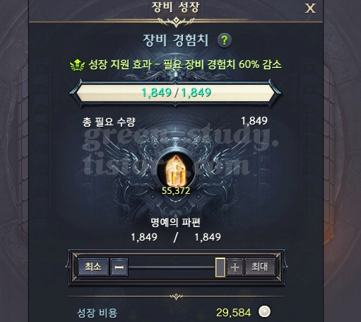 - 믿음 장비(802 레벨)를 8강까지 강화하여 960 레벨 만들기