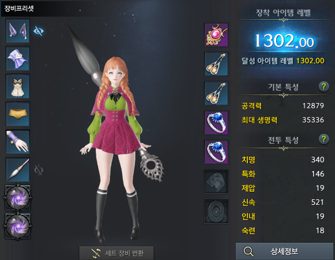 - 차원 장비(1302 레벨)를 계승후 재련을 통해 1340 레벨까지 재련