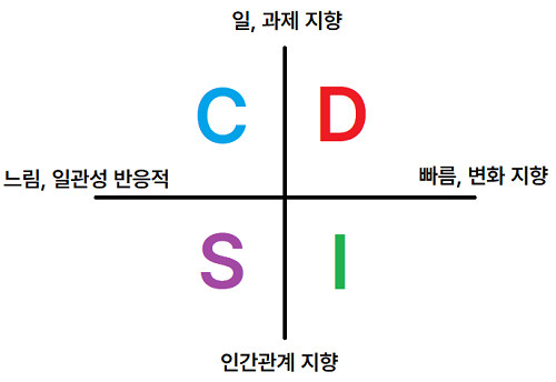 - CDSI / CDIS (설계자형) : 업무중심적 사고와 프로세스를 바탕으로 워커홀릭의 행동 경향을 보입니다.