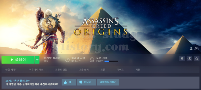 35시간 정도 플레이해봤습니다. 오리진은 고대 이집트를 여행하는 기분은 좋았던 것 같습니다. 피라미드를 탐험하는 것도 나쁘지 않은 경험이었습니다.