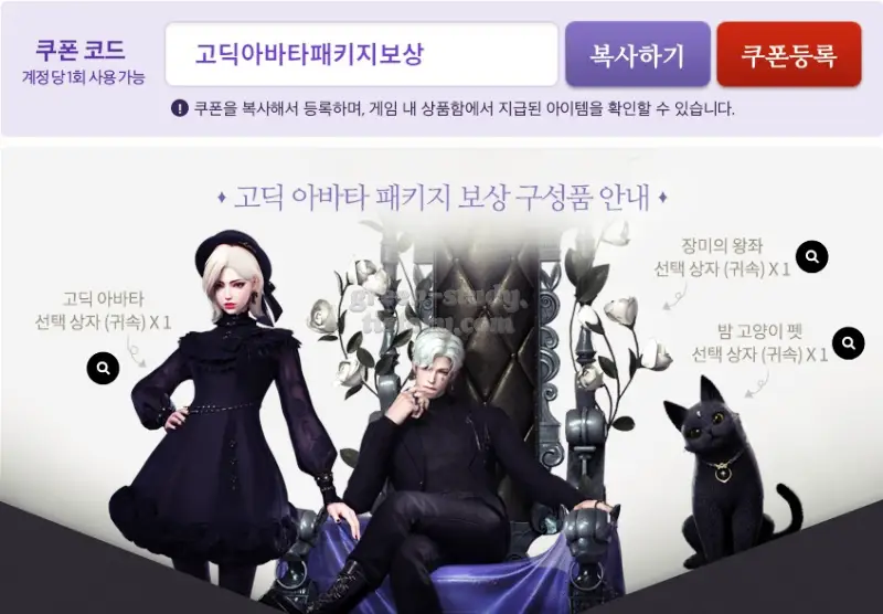 고딕 아바타 쿠폰의 경우 기간이 더 짧은 1월 25일까지인 점 알아두시길 바랍니다.