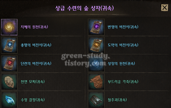 ▼ 상급 수련의 숲 상자 (귀속) 구성