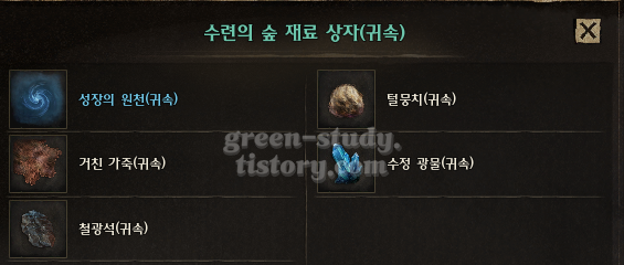 ▼ 하급 수련의 숲 상자 (귀속) 구성
