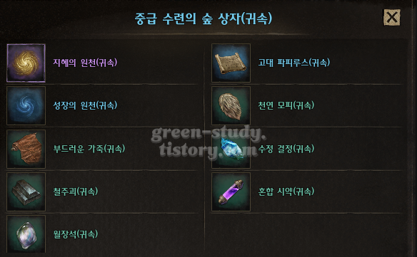 ▼ 중급 수련의 숲 상자 (귀속) 구성