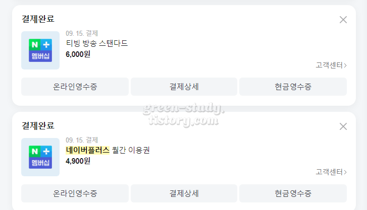네이버 멤버십에서 티빙 업그레이드 한 최종 결제 금액은 티빙 요금제와 같습니다. 같은 가격에 티빙과 네이버 멤버십 혜택을 받을 수 있어서 네이버 쇼핑을 자주 하는 분이시라면 네이버 멤버십에서 티빙 제휴를 선택하는 것이 4,900원을 중복 결제하지 않고 아낄 수 있는 방법입니다.
