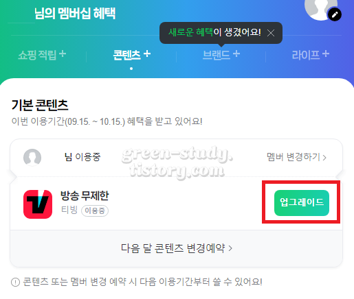 ▼ 네이버 멤버십 티빙 업그레이드 비용