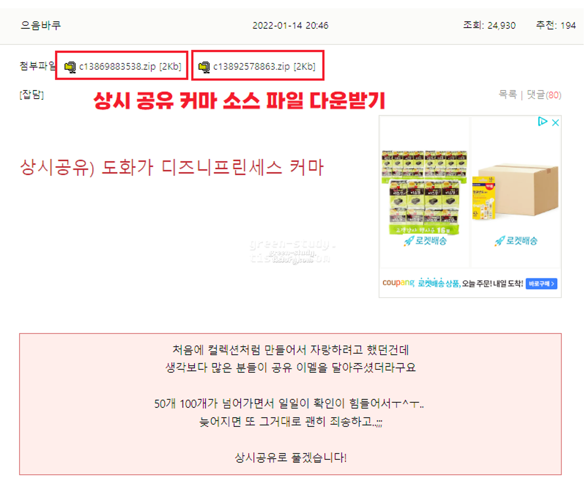 구글 드라이브로 파일을 공유하는 분도 있습니다.