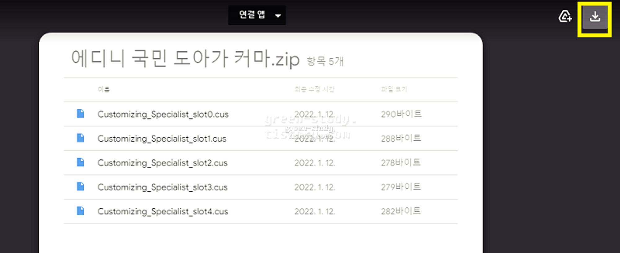 - 원하는 커스터마이징 파일(cus)을 다운로드하기