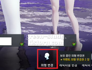 로아 커마는 캐릭터 선택창(6 캐릭터 정렬된 로그인 화면)에서 커스터마이징할 캐릭터를 선택 후 우측 하단에 있는 [외형 변경]을 클릭하여 커마하는 곳으로 진입합니다.