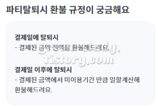 (15) 피클 플러스 환불 규정 및 파티원 탈퇴는 언제 가능한가 살펴보면, 잦은 탈퇴는 파티장이 계속 비밀번호를 변경해줘야 하는 스트레스 요소여서 파티원이 되었다면 1달(다음 결제일)까지는 탈퇴가 안됩니다.