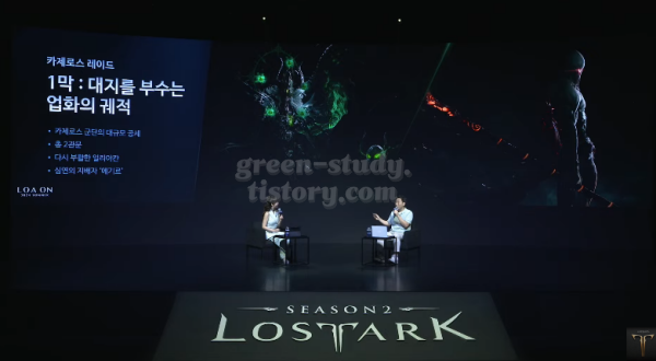 맛보기로 쿠르잔 북부 영상의 일부도 보여줬습니다. 아만이 카제로스 부활을 막으면 안된다고 나레이션이 있었습니다. 쿠르잔 북부는 로스트아크 1부를 마무리 짓는 스토리라고 합니다.