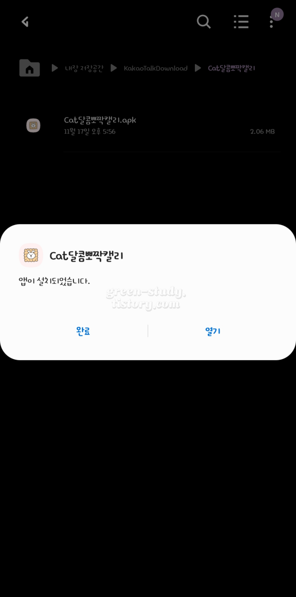 메일로 Cat달콤뽀짝캘리 apk 카카오톡 파일을 받게되었는데, 이를 설치하는 과정에서 약간 헤매는 과정이 있었습니다. Apk파일 자체가 갤럭시폰에서 다운로드 설치가 바로 되지 않는다면 다음과 같은 방법으로 해결할 수 있습니다.