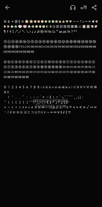 개인적으로 손글씨류가 아닌 고딕류 폰트를 구입시에는 어느 정도 규격이 갖춰지는 것을 선호해서, 다른 특문(○●■□♠ 사이에 ★♥이 살짝 크기가 더 커서 안 맞는 느낌이 드는 것이 아쉽습니다. 숫자 같은 경우 깔끔하게 떨어지는 거 같은데 특문을 잘 사용하지 않아서 신경이 많이 쓰이지는 않지만, 그 부분이 살짝 아쉬운 부분이고, 크게 아쉬운 부분은 없습니다.